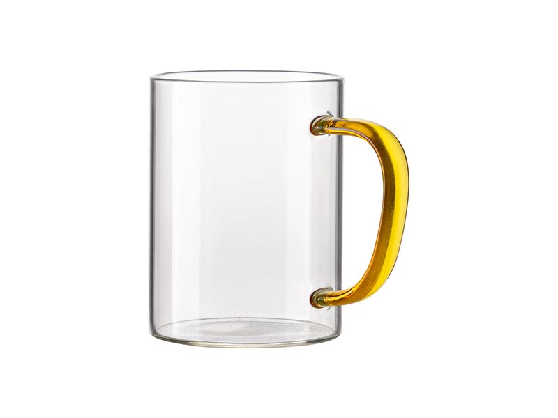 Be the first to review “12oz Clear Glass Mug with Yellow Handle 360ml” Cancel reply