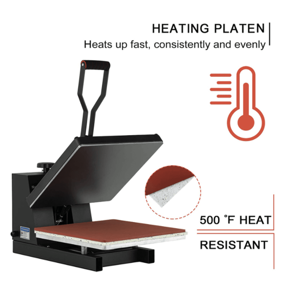 Pressure Adjustment: Heat presses allow you to adjust the pressure applied during the heat transfer process. This feature is important for accommodating different materials and thicknesses.