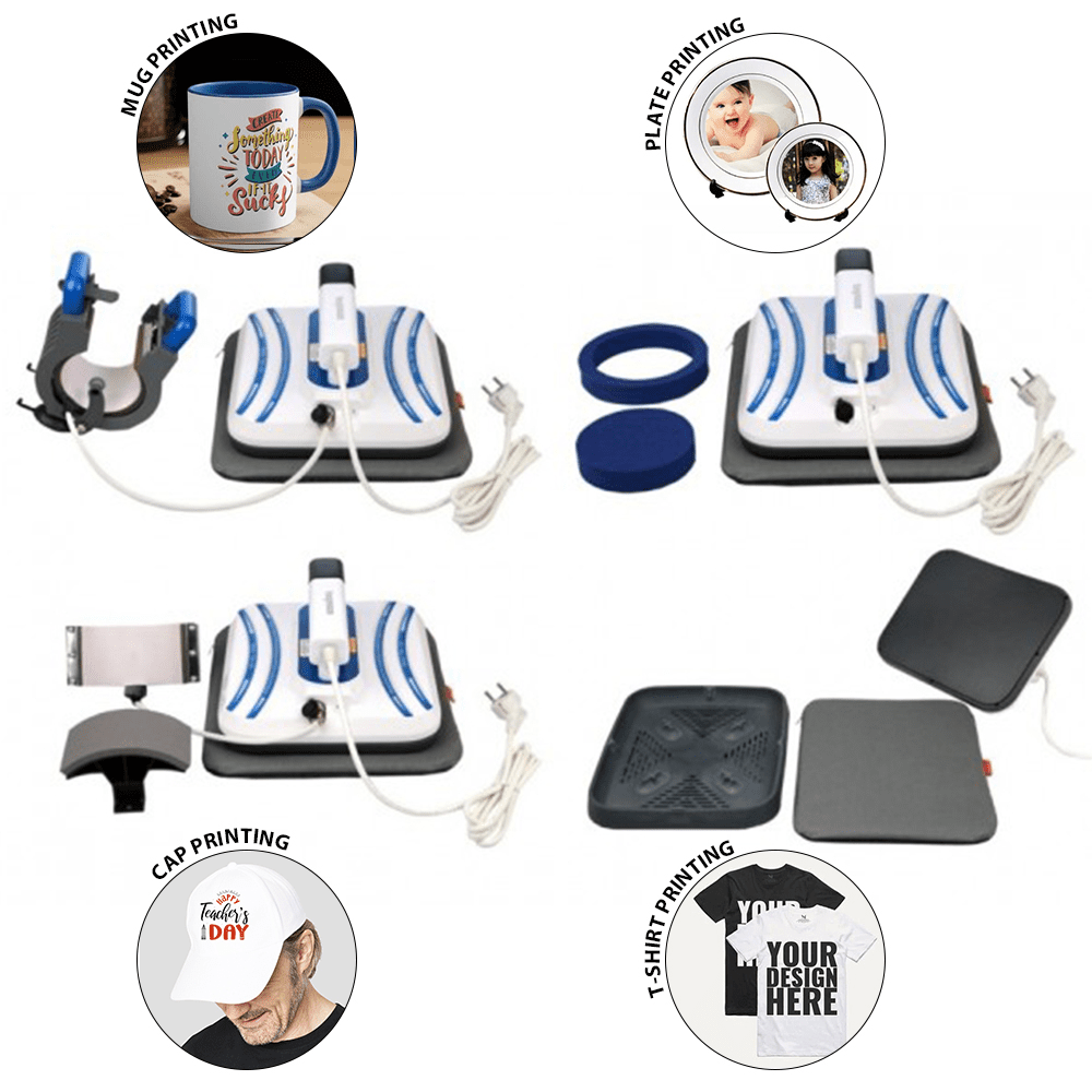 Attachments: It involve different platens or attachments for various items such as flat surfaces, mugs, plates, caps, etc.